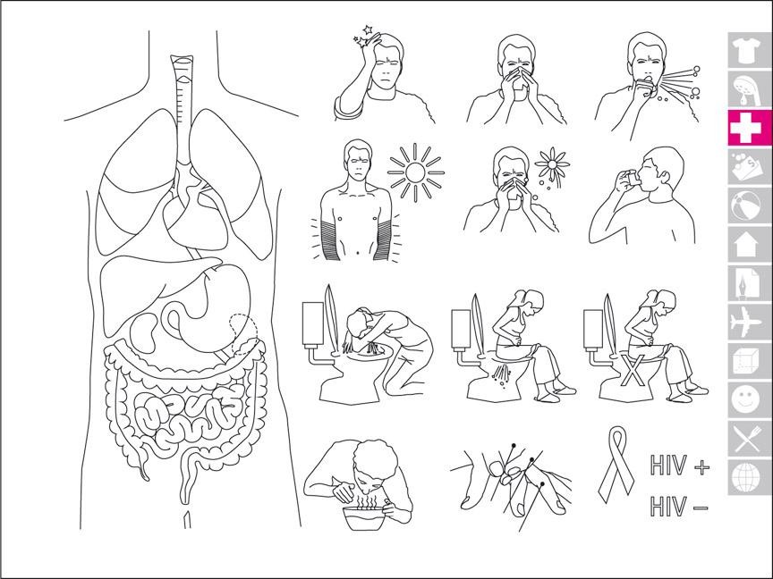 1.700 useful Icons, including 400 color photos Questions, answers and statements in six languages