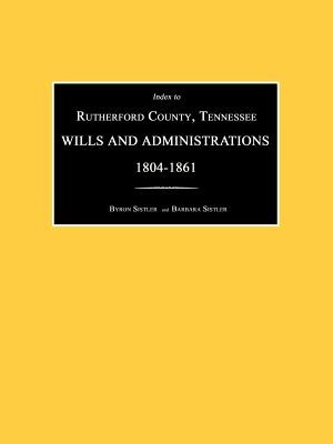 This index covers all Rutherford County, Tennessee, will books from 1804 through 1861, the entries of which were transcribed from microfilm of those original books. There are approximately 2,500 entries, which include the name of deceased, the year of probate or administration, and where to find the information in the original will books. Paperback, (1990), 2006, 2013, Index, 34 pp.