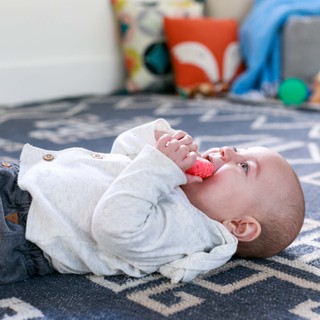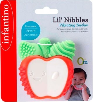 Šis spilgtās krāsas zobgrauznis mazuļiem patiks. Viegli noturamais, vibrējošais zobgrauznis maigi masē jūsu mazuļa smaganas un palīdz mazināt sāpes. Turklāt interesantie izvirzījumi un rievas atvieglo jūsu mazuļa zobiņu šķilšanos un mazina sāpes mutes dobumā. Šis zobgrauznis ir lieliski piemērots mazajām rociņām, tā tekstūras veicina attīstību, vienlaikus nomierina mazuļa jutīgās smaganas. No 3 mēnešu vecuma. Veidots no silikona, lai nodrošinātu ciešu, bet vienlaikus arī maigu sakodienu.
