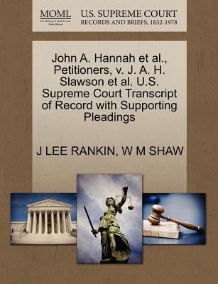 The Making of Modern Law: U.S. Supreme Court Records and Briefs, 1832-1978 contains the world's most comprehensive collection of records and briefs brought before the nation's highest court by leading legal practitioners - many who later became judges and associates of the court. It includes transcripts, applications for review, motions, petitions, supplements and other official papers of the most-studied and talked-about cases, including many that resulted in landmark decisions. This collection serves the needs of students and researchers in American legal history, politics, society and government, as well as practicing attorneys. This book contains copies of all known US Supreme Court filings related to this case including any transcripts of record, briefs, petitions, motions, jurisdictional statements, and memorandum filed. This book does not contain the Court's opinion. The below data was compiled from various identification fields in the bibliographic record of this title. This data is provided as an additional tool in helping ensure edition identification: John A. Hannah et al., Petitioners, v. J. A. H. Slawson et al.Petition / J LEE RANKIN / 1959 / 550 / 364 U.S. 855 / 81 S.Ct. 34 / 5 L.Ed.2d 79 / 11-27-1959John A. Hannah et al., Petitioners, v. J. A. H. Slawson et al.Respondent's Brief / W M SHAW / 1959 / 550 / 364 U.S. 855 / 81 S.Ct. 34 / 5 L.Ed.2d 79 / 1-8-1960