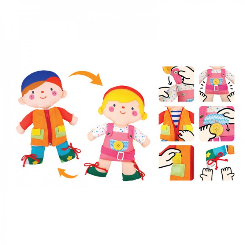 Šī saģērbjamā lelle sniedz bagātīgu izglītojošu pieredzi, apvienojot rotaļāšanos un mācīšanos. Ar rāvējslēdzējiem, līpaizdarēm, pogām un kurpju šņorēm bērni var attīstīt vērtīgas ģērbšanās prasmes, izklaidējoties kopā ar Veinu un Jūliju.