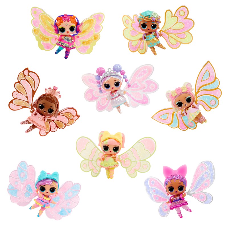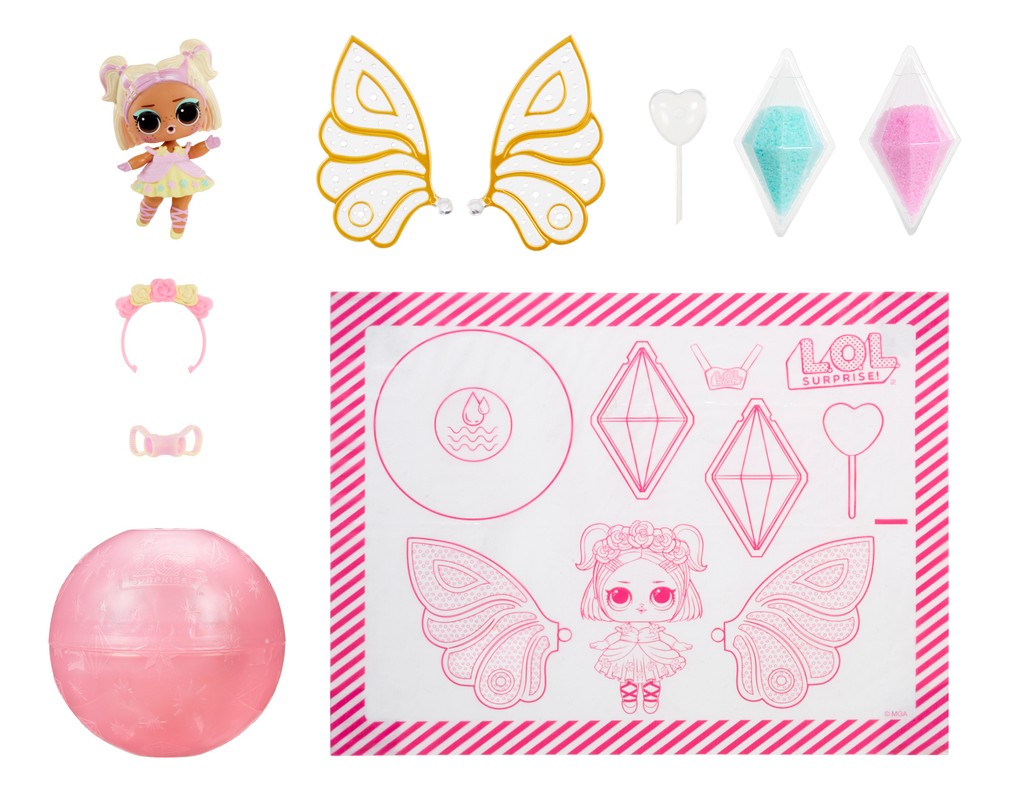 L.O.L. Surprise! piedāvā pilnīgi jaunu rotaļāšanās veidu, sniedzot jums iespēju pielāgot laumiņu spārniņus ar komplektā iekļauto „laumiņu putekļu” maisījumu un ūdeni! Novietojiet spārnus uz līdzenas virsmas, spārnu atvērtajās daļās uzklājiet komplektā iekļauto „laumiņu putekļu” maisījumu 3 krāsās pēc savas patikas, ar pipeti uzpiliniet ūdeni uz „laumiņu putekļiem”, pagaidiet, līdz tas izžūst, un pēc tam piestipriniet jaunos laumiņu spārniņus pie lellītes!
