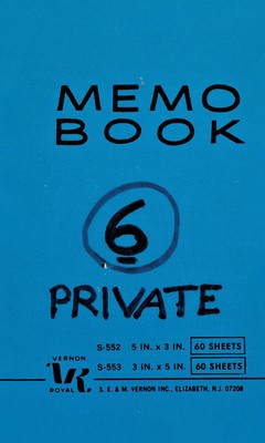 This is the sixth volume in Karma's 11-volume facsimile printing of Lee Lozano's Private Book (1930-99) project. One excerpt reads: "For my opening at the Whitney I would like to do a very special FANCY: want to give an invitation personally to the downtown people I know from being/living in this neighborhood for so long. In fact these are the only people I want at my opening. Just NEIGHBORHOOD people: from drugstores, food & laundry stores, stationary stores, etc. GET IT?"