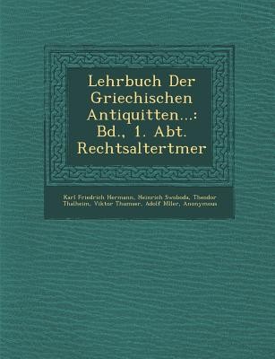 This is a reproduction of a book published before 1923. This book may have occasional imperfections such as missing or blurred pages, poor pictures, errant marks, etc. that were either part of the original artifact, or were introduced by the scanning process. We believe this work is culturally important, and despite the imperfections, have elected to bring it back into print as part of our continuing commitment to the preservation of printed works worldwide. We appreciate your understanding of the imperfections in the preservation process, and hope you enjoy this valuable book. ++++ The below data was compiled from various identification fields in the bibliographic record of this title. This data is provided as an additional tool in helping to ensure edition identification: ++++ Lehrbuch Der Griechischen Antiquit�ten...: Bd., 1. Abt. Rechtsaltert�mer; 4. ... Aufl., Hrsg. Von T. Thalheim. 1895; Volume 2, Part 1 Of Lehrbuch Der Griechischen Antiquit�ten; Viktor Thumser Karl Friedrich Hermann, Heinrich Swoboda, Theodor Thalheim, Viktor Thumser, Adolf M�ller, Hugo Bl�mner Mohr, 1895 Greece