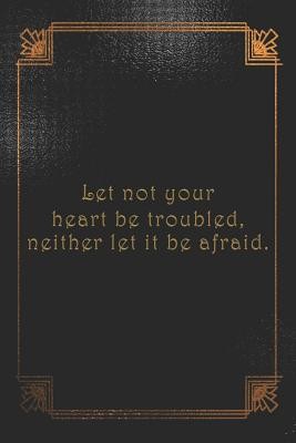 This notebook features a portion of the Bible verse John 14:27. It contains dot grid paper, which is a popular background for doodling and journaling.