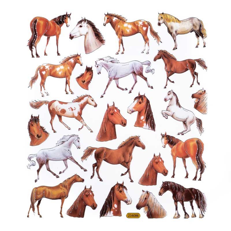 Lipdukai su sidabru praturtintais žirgais, kurie blizga šviesoje, skatinantys kūrybinį žaidimą.