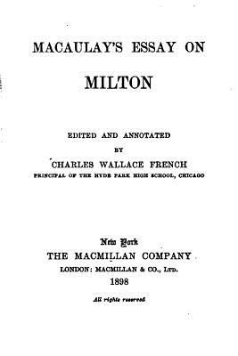 Macaulay's Essay on Milton by Macaulay. This book is a reproduction of the original book published in 1898 and may have some imperfections such as marks or hand-written notes.