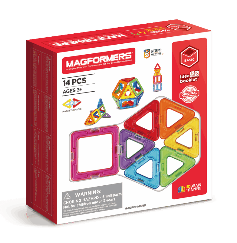 Atklājiet MAGFORMERS® vienmēr piesaistošā magnētiskā tehnoloģija, uzbūvējiet kubu, mazu māju un mazu “maģisku bumbiņu”. Izmantojot kvadrātus un trīsstūrus, 14 gab. ,,Rainbow´´ komplekts ir lielisks ievadkomplekts topošajiem celtniekiem, lai apgūtu pievilkšanās trikus un sāktu veidot 3D. Īpašības: 2 ģeometriskas formas. Soli pa solim ideju buklets ar būvējumiem no visa varavīksnes klāsta. Savietojams ar visām MAGFORMERS® formām un piederumiem. Neodīma retzemju magnēti garantētai savienojamībai. Bez BPA. HQABS plastmasa.