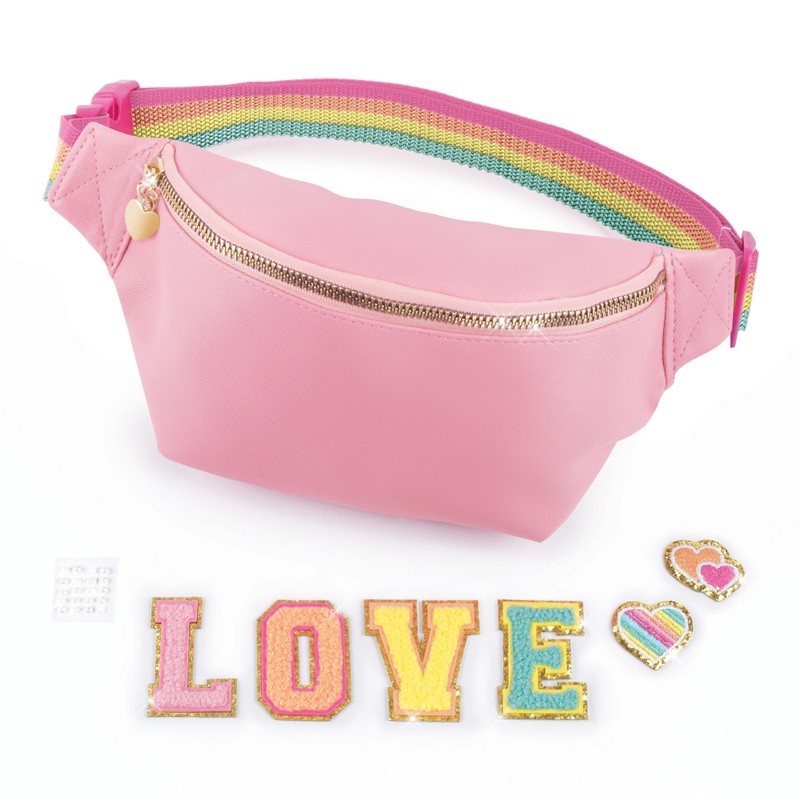 Make It Real ir misija iedvesmot meitenes! Iepazīstinām ar ārkārtīgi modernu modes somu ar mirdzošu audumu un izšūtiem ielāpiem ar uzrakstu LOVE, kas gaida, kad tos varēs pievienot rokassomiņai, lai piešķirtu papildu šarmu. Rotājiet ar dārgakmeņiem un dodieties izklaidēties. Pilnībā oderēta un ar rakstu. Somiņa ir jaukā rozā krāsā ar varavīksnes siksniņu un sirds piekariņu uz rāvējslēdzēja. Pilnībā oderēta un rakstaina. Tik eleganta, praktiska un to ir tik jautri izgreznot! Šī ir lieliska dāvana modes dāmām, neatkarīgi no pasākuma. Krāsains papildinājums jebkuram tērpam, lai papildinātu izskatu. Ideāli piemērota kosmētikas līdzekļu, aksesuāru, zīmuļu un pildspalvu un visa cita, kas jāņem līdzi ceļā, glabāšanai!