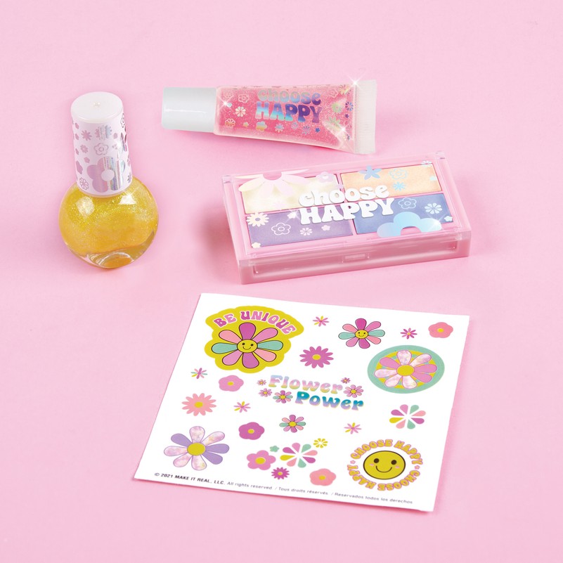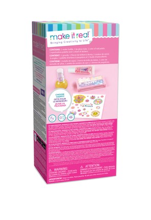Remdējiet savas slāpes pēc skaistuma ar šo komplektu: 1 nagu lakas pudelīte (5mL), 4 krāsu acu ēnu palete, 1 tūbiņa lūpu spīduma un uzlīmju lapa. 1000 ml pudelē ielejiet aukstu dzērienu pēc savas izvēles un atvadieties no slāpēm!