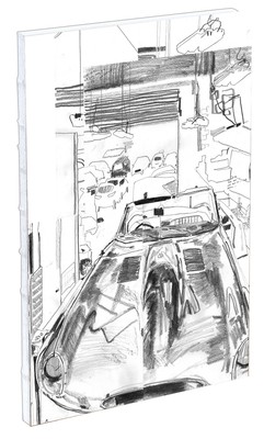 This new Sketchbook from teNeues is a nice big format hard cover slim book of 50 pages of 135gsm white craft paper. With exposed binding like our other notebook titles, this book will lay flat on your desk while sketching, drawing and coloring. For the first time we have partnered with Cheltenham University's art department and awarded one illustrator the cover shot on our Sketchbook for the Fall collection. We are so proud to print Yve Slater's dynamic graphite drawing of a luxe car in a garage using contour style handwork. We think it is a great addition to our line and makes a perfect complement to the Sketchbook line-up.