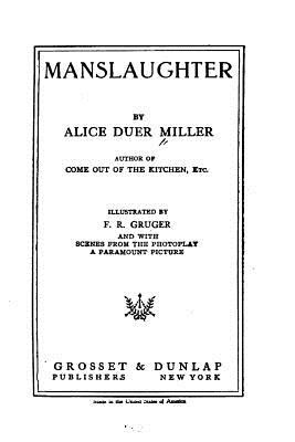 Manslaughter by Alice Duer Miller. This book is a reproduction of the original book published in 1921 and may have some imperfections such as marks or hand-written notes.