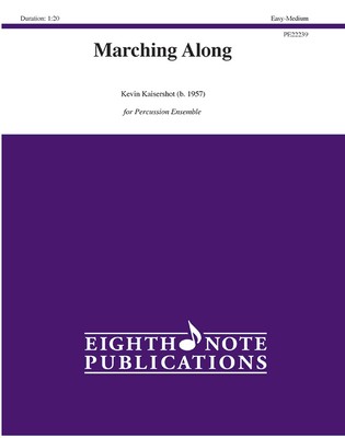 Marching Along is an effective five-part percussion ensemble work by Kevin Kaisershot, and is an excellent vehicle for teaching the 6/8 meter to young musicians. Utilizing only two xylophones for the melody, the remaining rhythm is provided by a standard snare drum, bass drum, and in this small setting---a pair of finger cymbals.