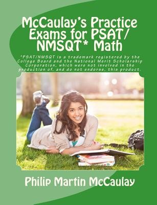 McCaulay's Practice Exams for PSAT/NMSQT* Math contains four complete 38-question sample tests for the mathematics sections of the Preliminary SAT/National Merit Scholarship Qualifying Test (PSAT/NMSQT*) co-sponsored by the College Board and National Merit Scholarship Corporation (NMSC), for a total of 152 practice questions with answers and explanations. The two mathematics sections have four categories of questions: Number and Operations (29%); Algebra and Functions (29%); Geometry and Measurement (29%); and Data Analysis, Statistics, and Probability (13%). The questions of each type are arranged with the easier questions first and the more difficult questions at the end.