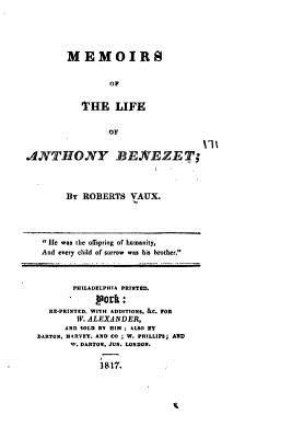 Memoirs of the life of Anthony Benezet by Roberts Vaux. This book is a reproduction of the original book published in 1817 and may have some imperfections such as marks or hand-written notes.