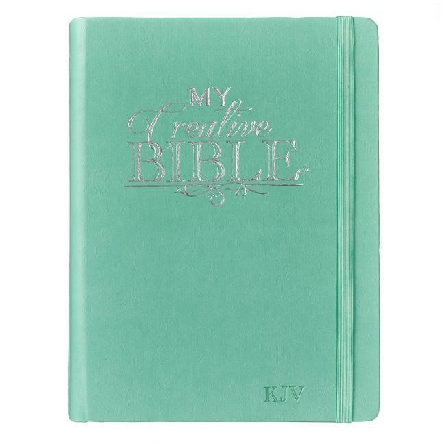 My Creative Bible is an exciting new concept in ways to experience the word of God in Scripture. This King James Version Journaling Bible is single-column printed, with two-inch-wide ruled margins for note-taking, scribing your reflections or creative expression. Nearly 400 hand-drawn, Scripture accompanying line-art illustrations are placed throughout the Bible to enhance embracement of The Word. There is an index of the Scripture artwork - line-art suitable for filling. Users will find this an invaluable visual tool for immersion and Bible study.The Aqua Imitation Leather Hardcover Edition features lovely silver titling skillfully debossed into the quality man-made cover material with the look and feel of real leather (trade name LuxLeather). There is an attached ribbon page marker and an attached elastic band closure.