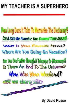 This book is dedicated to all teachers. My Teacher Is A Superhero is about a Super Teacher who teaches and motivates students to reach their highest potential. Students can get off course and not realize the consequences of their actions until it's too late. The Super Teacher makes sure students stay on track and are empowered to succeed. In this book there are even more questions than the ones that are on the front cover. There are many insights into a number of topics along with an entertaining educational story. Learning can be fun. This book provides you with a unique way to reflect, think about your life and all the dynamics, and the future. You can answer some of the questions The Super Teacher asks very easily and others you will have to ponder upon. After The Super Teacher asks you a question there will be additional information about the subject. Questions can be common or uncommon. The common questions are the ones that you have been asked many times. You can answer them easily because you're already prepared. If you're asked your name you will be able to say it right away. You have memorized your name and no longer have to think about it. The same goes for your address or birthday. When you're asked a common question such as how are you doing? Then you have to give more thought because your answer could vary each time. Uncommon questions are the ones you're only asked once in awhile or it's the first time you're being asked. More time has to be spent on an uncommon question because you might still be trying to figure out an answer. Have you ever heard someone say, that's a good question? When someone is making a statement like that, they're really saying, "I'm going to think about the question." This book is to encourage you to think and build your self confidence in answering questions. This can help prepare you for questions that you're asked daily. You can share what is going on in your life without having to reveal something personable by having it made public. Certain things in your life can be kept private but still be expressed. You can have an interactive experience where you're able to participate and answer questions from The Super Teacher. You can choose the way you want to answer them. Be creative and have fun. The Super Teacher wants you to do well in life.
