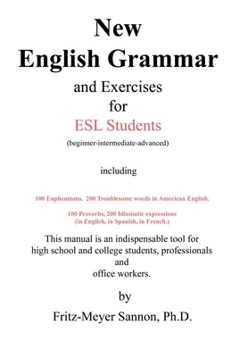 "New English Grammar and Exercises for ESL Students" (beginner-intermediate-advanced) including 100 euphemisms, 200 troublesome words in American English, 100 proverbs, 200 idiomatic expressions ( in English, in Spanish, in French),