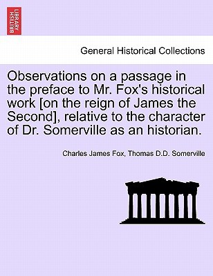 Title: Observations on a passage in the preface to Mr. Fox's historical work [on the reign of James the Second], relative to the character of Dr. Somerville as an historian.Publisher: British Library, Historical Print EditionsThe British Library is the national library of the United Kingdom. It is one of the world's largest research libraries holding over 150 million items in all known languages and formats: books, journals, newspapers, sound recordings, patents, maps, stamps, prints and much more. Its collections include around 14 million books, along with substantial additional collections of manuscripts and historical items dating back as far as 300 BC.The GENERAL HISTORICAL collection includes books from the British Library digitised by Microsoft. This varied collection includes material that gives readers a 19th century view of the world. Topics include health, education, economics, agriculture, environment, technology, culture, politics, labour and industry, mining, penal policy, and social order. ++++The below data was compiled from various identification fields in the bibliographic record of this title. This data is provided as an additional tool in helping to insure edition identification: ++++ British Library Fox, Charles James; Somerville, Thomas D.D.; 1808? 4 . 806.e.19.