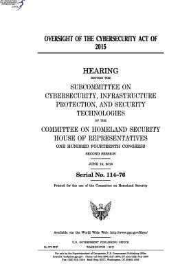 Oversight of the Cybersecurity Act of 2015: hearing before the Subcommittee on Cybersecurity, Infrastructure Protection, and Security Technologies of the Committee on Homeland Security, House of Representatives, One Hundred Fourteenth Congress, second session, June 15, 2016.