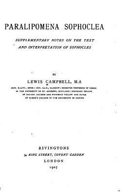 Paralipomena Sophoclea, Supplementary Notes on the Text and Interpretation of Sophocles by Lewis Campbell. This book is a reproduction of the original book published in 1907 and may have some imperfections such as marks or hand-written notes.