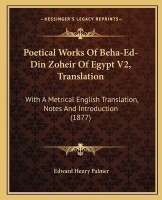 Poetical Works Of Beha-Ed-Din Zoheir Of Egypt V2, Translation (e-book) (used book) | bookbook.eu
