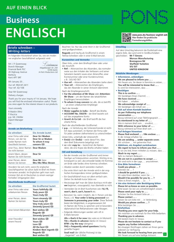 PONS auf einen Blick Business Englisch