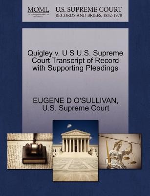 The Making of Modern Law: U.S. Supreme Court Records and Briefs, 1832-1978 contains the world's most comprehensive collection of records and briefs brought before the nation's highest court by leading legal practitioners - many who later became judges and associates of the court. It includes transcripts, applications for review, motions, petitions, supplements and other official papers of the most-studied and talked-about cases, including many that resulted in landmark decisions. This collection serves the needs of students and researchers in American legal history, politics, society and government, as well as practicing attorneys. This book contains copies of all known US Supreme Court filings related to this case including any transcripts of record, briefs, petitions, motions, jurisdictional statements, and memorandum filed. This book does not contain the Court's opinion. The below data was compiled from various identification fields in the bibliographic record of this title. This data is provided as an additional tool in helping ensure edition identification: Quigley v. U SPetition / EUGENE D O'SULLIVAN / 1935 / 438 / 296 U.S. 629 / 56 S.Ct. 152 / 80 L.Ed. 447 / 9-11-1935Quigley v. U SBrief in Opposition (P) / U.S. Supreme Court / 1935 / 438 / 296 U.S. 629 / 56 S.Ct. 152 / 80 L.Ed. 447 / 10-11-1935