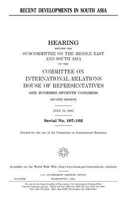 Recent developments in South Asia: hearing before the Subcommittee on the Middle East and South Asia of the Committee on International Relations, House of Representatives, One Hundred Seventh Congress, second session, July 18, 2002.