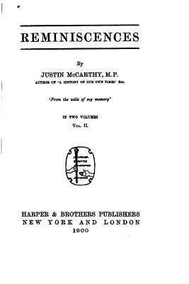 Reminiscences - Vol. II by Justin McCarthy. This book is a reproduction of the original book published in 1899 and may have some imperfections such as marks or hand-written notes.