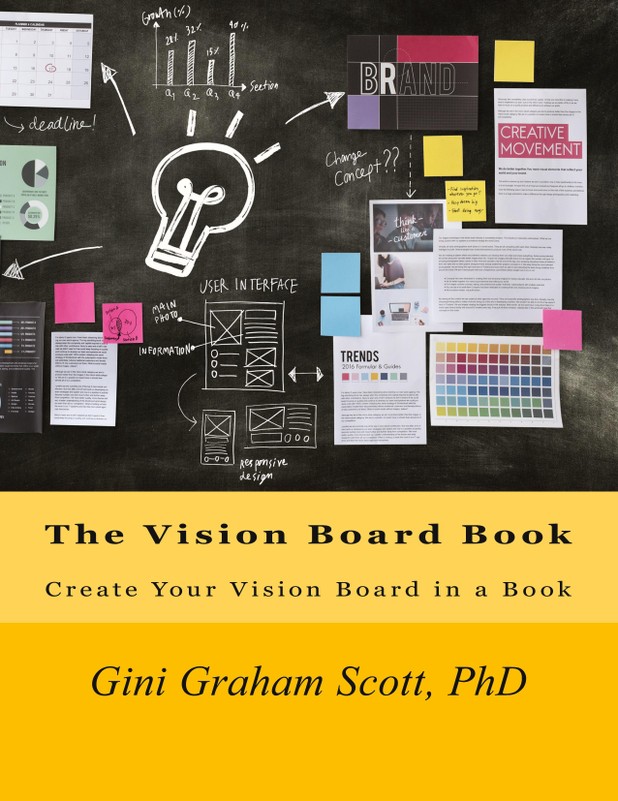 THE VISION BOARD BOOK provides a way to create your vision board in a book, in which you envision what you want and decide what action steps to take to get it. But instead of creating your vision on a large board, usually about 24”x36,” you create it in an 8 ½”x11” book.