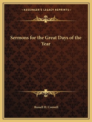 1922. This volume contains fifteen sermons written by Rev. Russell H. Conwell based on various scripture passages for great days of the year. Contents: New Year and debt; Saint Valentine's marriage reform; Abraham Lincoln; George Washington day; Palm Sunday's sacrifice; Easter; Mother's Day; use of Decoration Day; sure to blunder; graduation thoughts; the American Flag; harvest home; go forward, a Rally Day sermon, Thanksgiving sacrifice; and a Christmas thought.