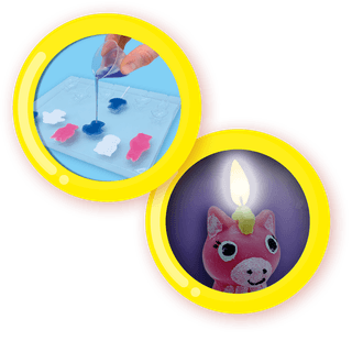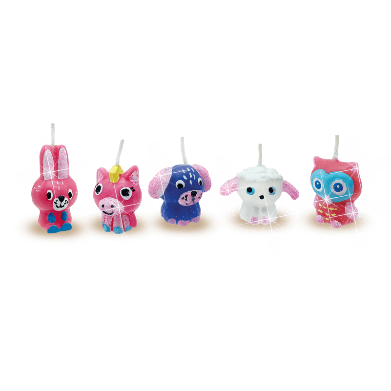 Izkausējiet aromātisko sveču komplektu mikroviļņu krāsnī un izlejiet dažādu krāsu sveces sešu jautru dzīvnieku formās. Daktis ir iekļautas. Tagad izkrāsojiet tās ar komplektā iekļauto krāsu un spīdumiem. Šīs jaukās, mājās gatavotās svecītes ir pārāk mīlīgas, lai tiktu aizdegtas.