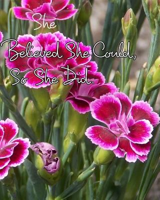 LARGE INSPIRATIONAL QUOTE NOTEBOOK / JOURNAL 110 LINED PAGES This notebook is 8" x 10" featuring 110 pages (55 sheets) that are wide ruled. It features the inspirational quote, "She Believed She Could, So She Did." on the front cover. Use it as a notebook, journal or even a diary. There are 110 lined pages waiting to be filled with your words!