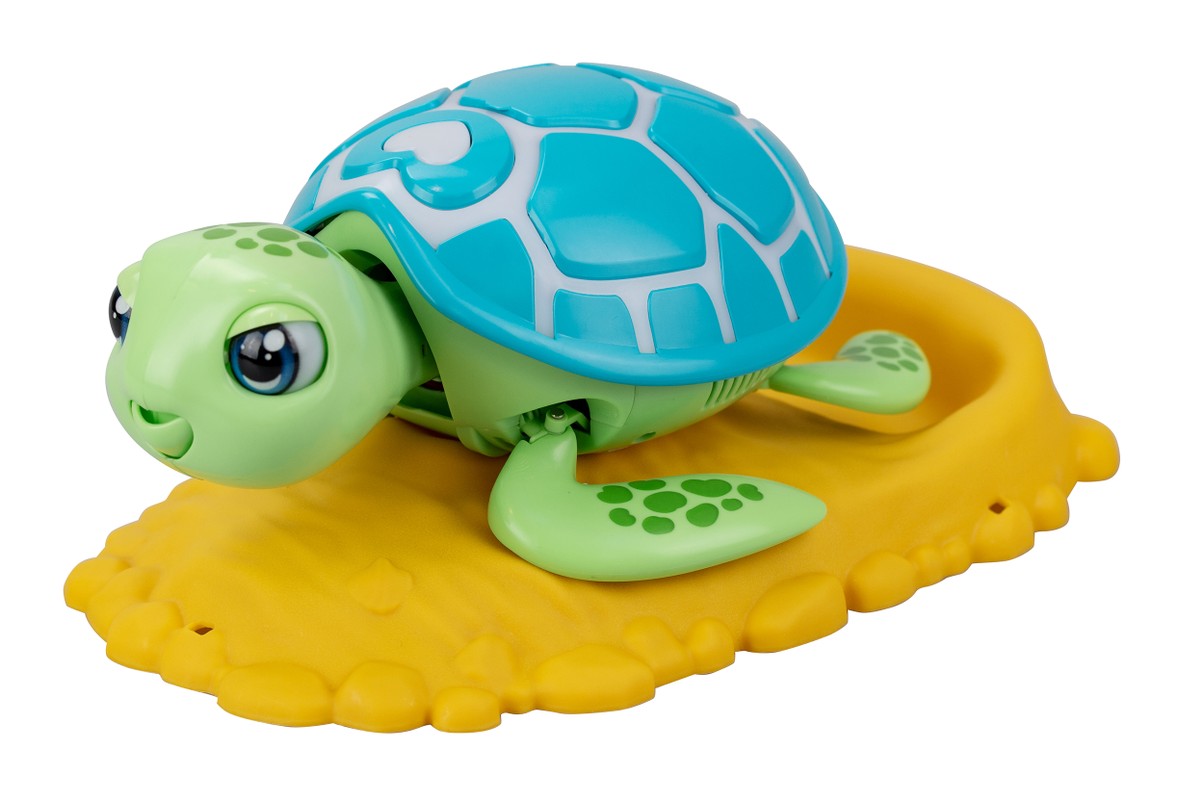 Piedāvājam Silverlit rotaļlietu Izglāb bruņurupuci! Es kustinu pleznas, kustinu galvu! Es mirkšķinu acis, kad guļu savā gultiņā! Es spēju JUST! Kad mana sirsniņa kļūst sarkana, tas nozīmē, ka es TEVI MĪLU! Bet kas tad tas? ...Tas ir PĀRSTEIGUMS!! Pēc izglābšanas es jūtos droši, tāpēc pacietīgi dēju olas. Pēc kāda brīža, plati smaidot, es uz paplātes izdēšu 3 olas. Vai olās ir bruņurupucīši? JĀ! Un tie ir tik piemīlīgi! Funkcijas: Kustīgas pleznas, reālistiskas galvas un acu kustības, gaismiņas un skaņas funkcija, bruņurupuča glābšanas funkcija, nomainot ievainoto čaulu, bruņurupucis dēs olas, kad būs izārstēts. Olās ir mazi bruņurupucīši.