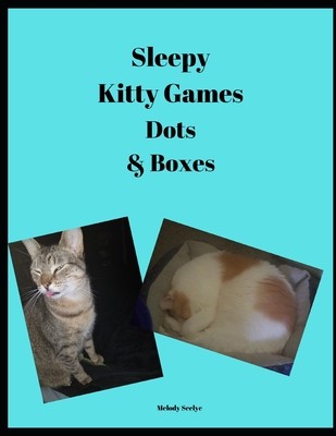 You don't need to be a sleepy kitty to play sleepy kitty games! Leo and Ghoul are the sleepy (or not so sleepy) kitties on this book cover. Dots and Boxes is a simple pen and paper game played by two people. It was originally published in the 1800s in France under the name La Pipopipette. It is also called Pigs in a Pen, Boxes or Game of Dots. There are a variety of grids and each of them affect the game length of the game as the larger grids take longer to play. Each page has two 9x9, six 6x6, and four 4x4 grids.