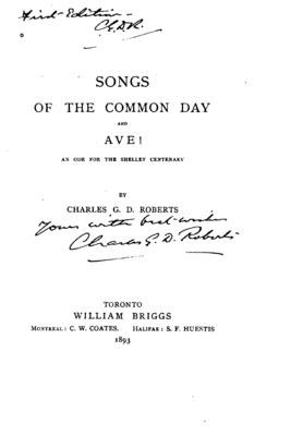 Songs of the Common Day and Ave!, An Ode for the Shelley Centenary by Charles George Douglas Roberts. This book is a reproduction of the original book published in 1893 and may have some imperfections such as marks or hand-written notes.