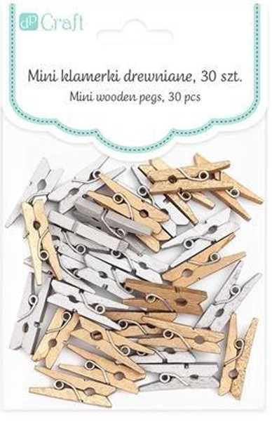 Spaustukai mediniai mini 30vnt gold+silver