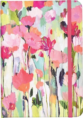 160 lined pages. 5" wide x 7" high (12.7 cm wide x 17.8 cm high). Bookbound hardcover. Elastic band closure. Inside back cover pocket. Archival/acid-free 120 gsm paper. This journal's cover features a field of pink and purple flowers.