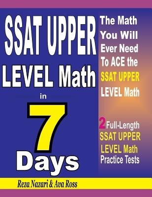SSAT UPPER LEVEL Math in 7 Days helps students to focus on all Math topics that they will need to prepare for the SSAT Upper Level Math test. Students only need to spend about 4 - 6 hours daily in their 7-day period in order to be well prepared for the test. This book with 2 complete SSAT Upper Level Mathematics tests is all a student will ever need to fully prepare for the SSAT Upper Level Math.