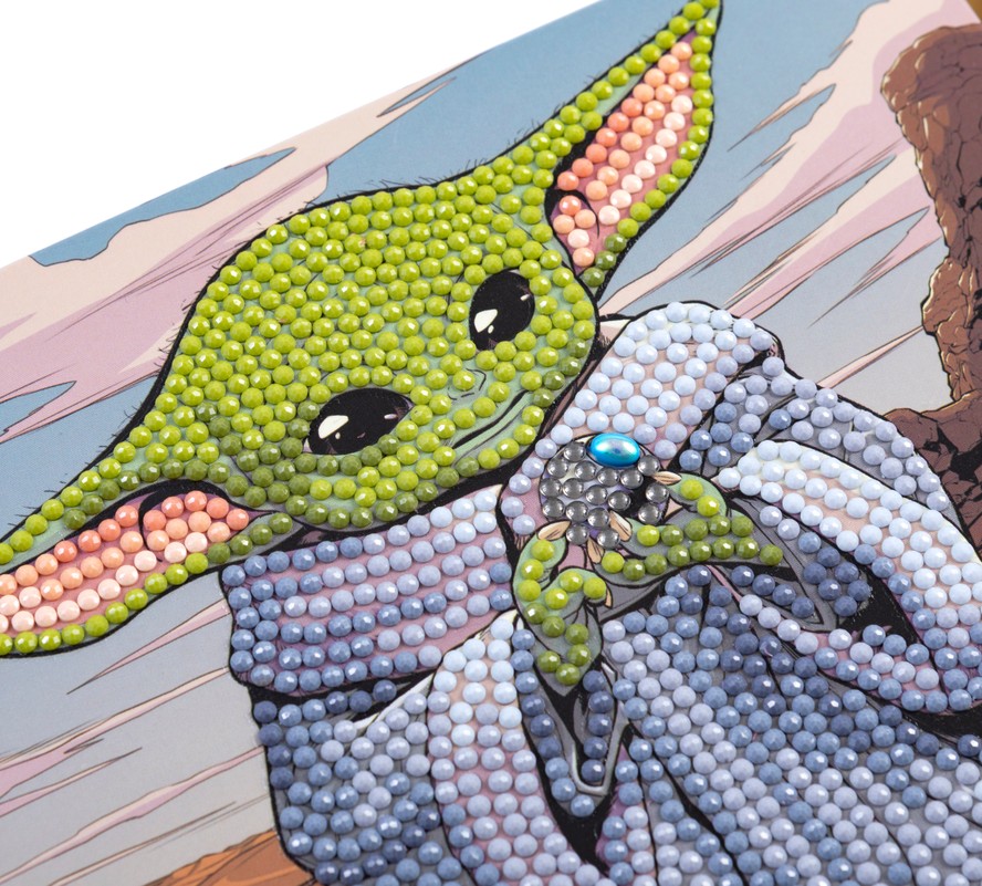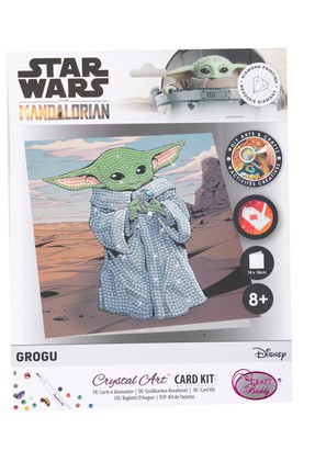 Bērni un kolekcionāri var iztēloties episkās Galaktikas cīņas un misijas no Zvaigžņu karu sāgas filmām! Crystal Art kartītes komplekti ir amatniecības komplekti, kas ir ideāli piemēroti bērniem un pieaugušajiem. No tiem var izgatavot mirdzošas un skaistas kristālu kartītes, izmantojot gleznošanas ar dimantiņiem tehniku. Katram Crystal Art kartītes komplekta dizainam ir līmējoša veidne ar numuriņiem. Izmantojot pildspalvu gabaliņu pacelšanai (iekļauta), pievienojiet nedaudz želejas vaska, pēc tam vienkārši paceliet krāsainos kristāliņus un novietojiet tos uz atbilstoši numurētajiem punktiem. Tie uzreiz pielīp! Šī tehnika ir relaksējoša un terapeitiska, turklāt rezultāts ir skaists kristāliņu mākslasdarbs, ko varat uzdāvināt saviem mīļajiem. Šīs kristāla kartītes izgatavošana aizņem 30–45 minūtes.