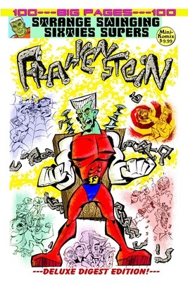 Strange Swinging Sixties Supers continues with the greatest stitchpunk creature of all time, Frankenstein! After laying dormant in the long abandoned Castle Frankenstein for over a hundred years, the creature is awakened by a stray bolt of lightning. He puts on a mask to blend into the regular world, and takes on the secret identity of Frank Stone. After saving the life of an elderly millionaire, Frankenstein is rewarded by becoming his sole heir, and collects his entire fortune. Frankenstein then uses his supernatural strength to take on the criminal mastermind Mr. Freek and his colossal gorilla Bluto from taking over Metropole City. Frank also confronts a hypnotic super computer, an evil double, a giant spider, and overgrown reptiles. Superb Saturday Morning action and excitement in this monstrous marvel of the Silver Age!
