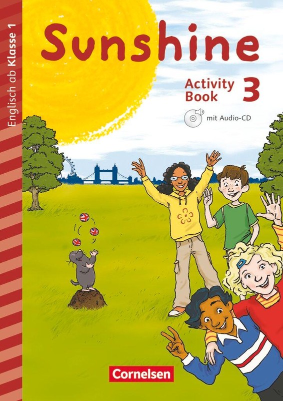 Activity Book mit Audio-CD Das Activity Book enthält Bildergeschichten, Minibildkarten, vielseitige Aufgaben zu den mündlichen Fertigkeiten sowie eine CD mit Liedern, Reimen und Hörtexten. Ab Klasse 3 kommen Lese- und Schreibaufgaben verstärkt hinzu. Auf Portfolio-Seiten überprüfen die Kinder das Erlernte. Activity Book mit Audio-CD - ab Klasse 3 mit interaktiven Übungen Die interaktiven Übungen sind ein ergänzendes Angebot zum Activity Book . Die Trainingseinheiten sind abgestimmt auf die Unterrichtsinhalte und bieten den Schülerinnen und Schülern die Möglichkeit, zu den wichtigsten Themen ihre Kenntnisse zu vertiefen. Tipps und Feedback unterstützen beim eigenständigen Lösen der Aufgaben. Pupil's Book (ab Klasse 3) Bildergeschichten, Dialoge, Hörverstehensaufgaben, Spiele, Lieder und Reime machen das Pupil's Book unverzichtbar. Die More-to-explore- Seiten vermitteln landeskundliche und fächerübergreifende Themen. Handreichungen für den Unterricht mit CDs Alle Informationen für die Planung einer Unterrichtsstunde finden sich auf einem Blatt. Zusätzlich enthalten sind Audio-CDs mit allen Liedern, Reimen und Hörtexten sowie editierbare Kopiervorlagen und weiteres Material auf CD-ROM. Inklusion - Materialmappe für den Unterricht (ab Klasse 3) Mit vereinfachten Seiten aus dem Lehrwerk und spielerischen Materialien. Lernstandserhebungen mit CD-Extra Vielfältige Aufgaben und Beobachtungsbögen helfen, die Leistungen der Kinder im Hören, Lesen, Schreiben und Sprechen zu bewerten. Auf der Audio-CD sind alle Hörtexte zu den Aufgaben zu finden. Die CD-ROM enthält unter anderem alle Beobachtungsbögen und Aufgaben in editierbarer Form. Bild-, Wort- und Storykarten Die Bildkarten und Poster helfen, den neuen Wortschatz zu erlernen. Wortkarten unterstützen dabei, das Schriftbild einzuführen. Storykarten unterstützen mit Illustrationen das Textverständnis. Außerdem gibt es zu jeder Unit ein Poster. Video-DVD Sunshine Stories: Die DVD enthält animierte Märchen und Comic-Stories sowie pro Unit einen thematisch passenden Clip mit Mr Mole und Mr Digger.