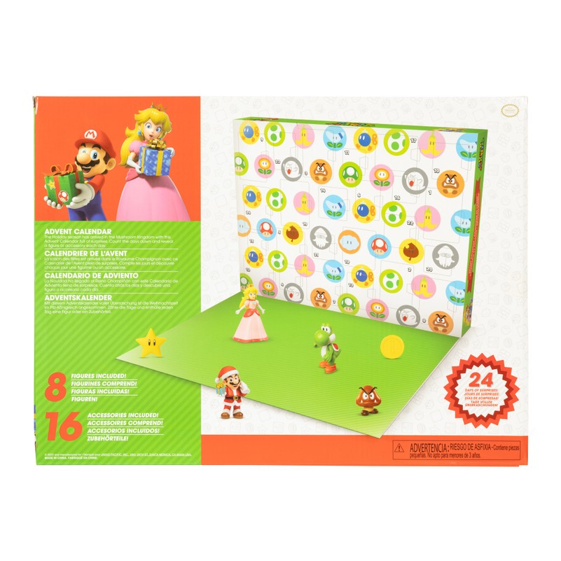 Gatavojieties svētku piedzīvojumam ar Super Mario Adventes kalendāru, kas lieliski piemērots Ziemassvētku gaidīšanai! Katra diena sagādā apburošu pārsteigumu, kad atverat piekto paneli, lai atklātu pop-up vidi, kas piepildīta ar svētku Mario elementiem. Un tas vēl nav viss! Atklājiet prieku, ko sniedz 6 cm figūriņu un aksesuāru kolekcionēšana, tostarp aizraujoši jaunie papildinājumi – Santa Mario, sniegavīrs Mario un sniegavīrs Luidži. Ļaujiet Super Mario Adventes kalendāram pievienot spēļu burvību jūsu brīvdienu sezonai!