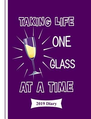 Funny wine drinkers quote and wine glass graphic on the cover of 2019 weekly diary/planner. A fun novelty gift idea for ladies who like a glass or two of wine.