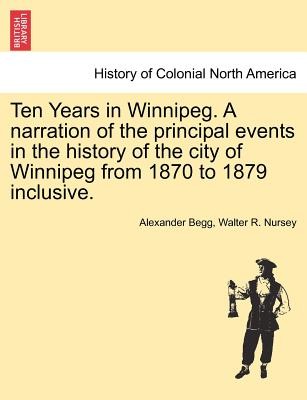 Title: Ten Years in Winnipeg. A narration of the principal events in the history of the city of Winnipeg from ... 1870 to ... 1879 inclusive.Publisher: British Library, Historical Print EditionsThe British Library is the national library of the United Kingdom. It is one of the world's largest research libraries holding over 150 million items in all known languages and formats: books, journals, newspapers, sound recordings, patents, maps, stamps, prints and much more. Its collections include around 14 million books, along with substantial additional collections of manuscripts and historical items dating back as far as 300 BC.The HISTORY OF COLONIAL NORTH AMERICA collection includes books from the British Library digitised by Microsoft. This collection refers to the European settlements in North America through independence, with emphasis on the history of the thirteen colonies of Britain. Attention is paid to the histories of Jamestown and the early colonial interactions with Native Americans. The contextual framework of this collection highlights 16th century English, Scottish, French, Spanish, and Dutch expansion. ++++The below data was compiled from various identification fields in the bibliographic record of this title. This data is provided as an additional tool in helping to insure edition identification: ++++ British Library Begg, Alexander; Nursey, Walter R.; 1879. 226 p.; 8 . 10409.e.11.