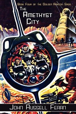 The human-occupied planets in the Solar System, Earth and Mars, are suddenly threatened with a space-borne plague that rusts and destroys all metals. If the "disease" continues unchecked, all of civilization is threatened. Behind this insidious menace is Sefner Quorne, the sinister master scientist of Atlantis. Quorne had earlier enslaved the humans on Earth, until he was deposed by the Golden Amazon and Abna, the real Lord of Atlantis. But now, with Abna dead, and the Amazon mortally wounded on one of the moons of Jupiter, nothing can halt Quorne's plans--until a lone space traveller abruptly intervenes. Viona, a beautiful young woman whose origins are shrouded in mystery, is somehow connected to the mysterious Amethyst City of Saturn...a place that cannot possibly exist! Volume Four in this exciting continuing saga of Earth and space.