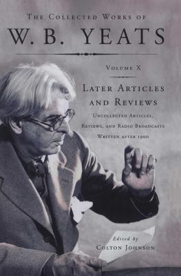 The Collected Works of W. B. Yeats, Volume X: Later Articles and Reviews is part of a fourteen-volume series under the general editorship of eminent Yeats scholars Richard J. Finneran and George Mills Harper. This first complete edition includes virtually all of the Nobel laureate's published work, in authoritative texts and with extensive explanatory notes. Later Articles and Reviews consists of fifty-four prose pieces published between 1900 and Yeats's death in January 1939 and benefits from the notes and emendations of Yeats scholar Colton Johnson. The pieces collected here are occasional, and they reflect the many interests and engagements of Yeats in his maturity. No longer a reviewer or polemicist, Yeats is an international figure: a senator in the fledgling Irish state, a defining modern poet, a distinguished essayist. And here we have him writing -- with grace, wit, and passion -- on the state of Ireland in the world, on Irish language and Irish literature, on his artistic contemporaries, on the Abbey Theater, on divorce, on censorship, on his evolution as a poet and dramatist, on his own poetry. Volume X also includes texts of ten radio programs Yeats broadcast between 1931 and 1937. This is not only the first collection but also the first printing of Yeats's radio work, which constitutes the largest previously uncollected body of his writings and possibly the most important to remain largely unstudied. Carefully assembled from manuscripts, typescripts, broadcast scripts, and fragmentary recordings, the programs range from a scripted interview on contemporary issues to elaborate stagings of his own and others' poetry. One of the radio programs is presented in an appendix complete with the commissioned musical score that set Yeats's poetry to music, Yeats's own emendations on the BBC broadcast script, and the diacritical notes with which the broadcast reader indicated Yeats's interpretive instructions. Here, then, is seasoned Yeats, writing and speaking vigorously and with keen personal insight about the modern age and his place in it.EXTRA 10 % discount with code: EXTRA