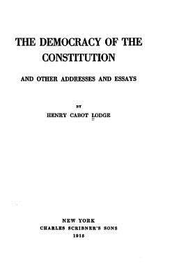 The Democracy of the Constitution, And Other Addresses and Essays by Henry Cabot Lodge. This book is a reproduction of the original book published in 1915 and may have some imperfections such as marks or hand-written notes.