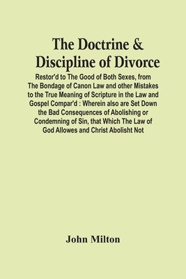 The Doctrine & Discipline Of Divorce: Restor'D To The Good Of Both Sexes, From The Bondage Of Canon Law And Other Mistakes To The True Meaning Of Scripture In The Law And Gospel Compar'D: Wherein Also Are Set Down The Bad Consequences Of Abolishing Or Condemning Of Sin, That Which The Law Of God Allowes And Christ Abolisht Not, has been considered by academicians and scholars of great significance and value to literature. This forms a part of the knowledge base for future generations. So that the book is never forgotten we have represented this book in a print format as the same form as it was originally first published. Hence any marks or annotations seen are left intentionally to preserve its true nature.